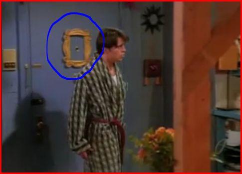 Check out the gold peephole frame in Monica and Rachel's apartment. It was originally a mirror that was smashed by the a crew member by accident. They placed it over the peephole, and it's been there ever since.