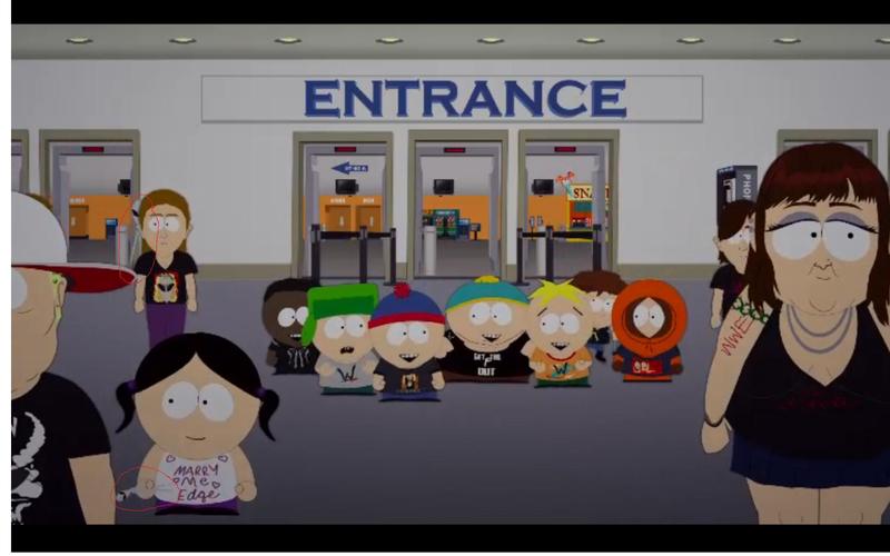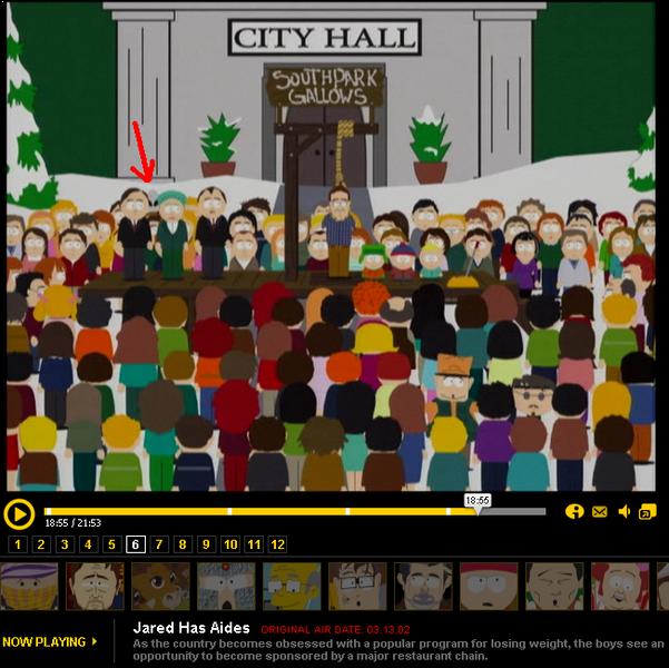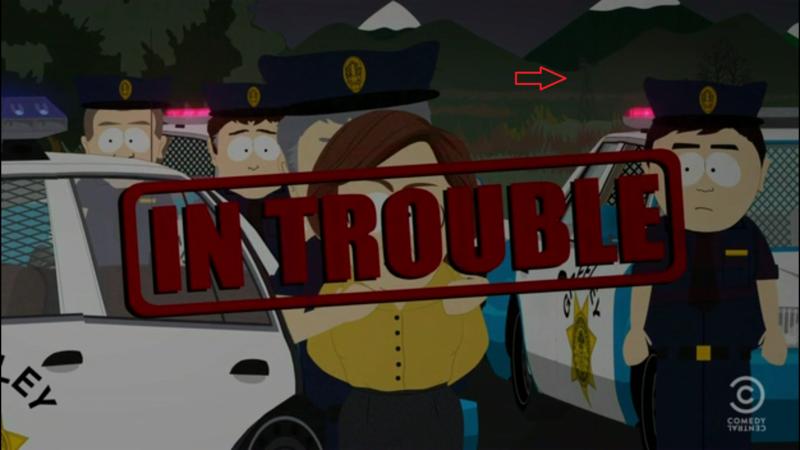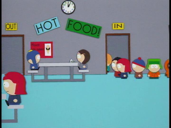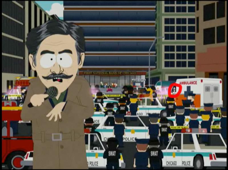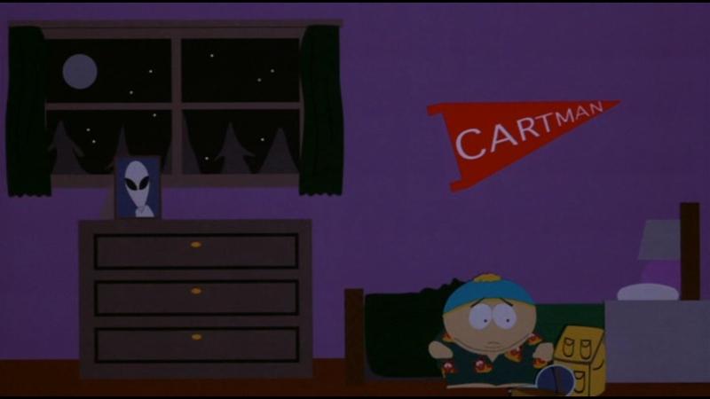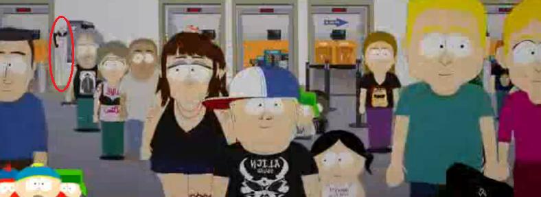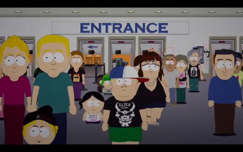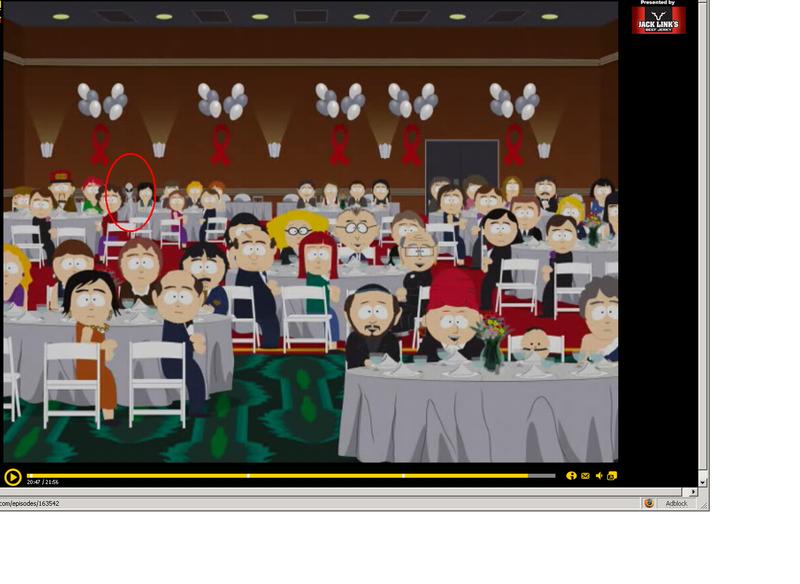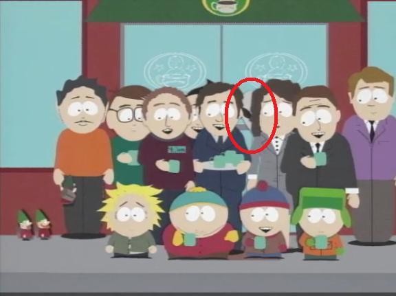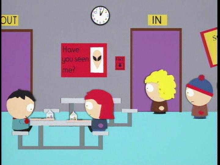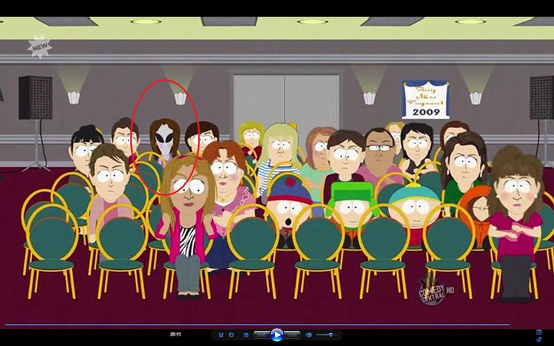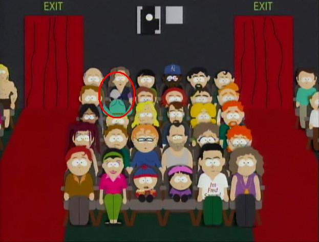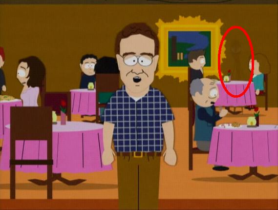 | Alien sighting (in the woman's clothing behind Chef and Mrs. Cartman) |