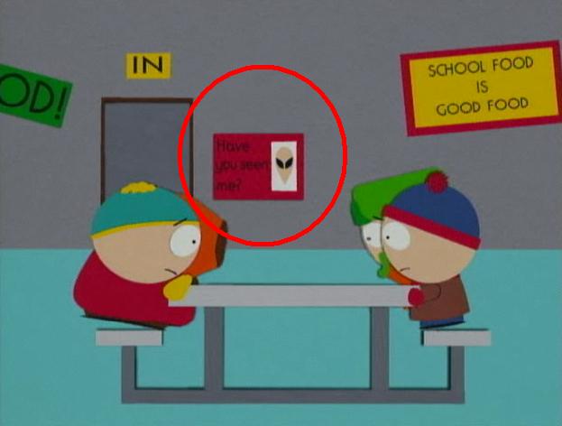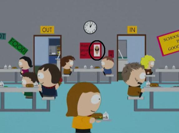 Everybody knows that Kenny dies in every episode, but there is also an Alien visitor featured in EVERY episode somewhere, sometimes in a flash-frame, sometimes in posters, in the background, etc.