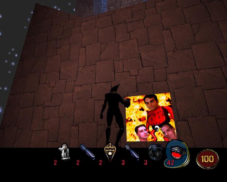 Next, look to your right. Start firing like crazy at the background, and eventually you will start hitting some invisible ground. This is very, VERY hard to find, but don't give up.
