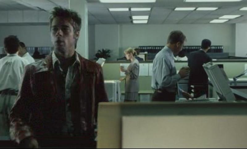 At the beginning of the movie, Edward Norton's Narrator character goes to support groups. During pivotal parts you will notice the screen flash. This is not a mistake or a projectionist blunder—it is David Fitcher slipping in images of Brad Pitt interjected onto the film for only a few frames. The longest flash happening after the Narrator confronts Helena Bonham Carter. We are also subjected to a quick flash of porn just as the kiddies were at the very end of the movie. There are more instances in the movie of these kind of things. You have to have a quick eye or be a projectionist to catch these meaningful little subliminal messages. Fitcher did the same thing in Seven.