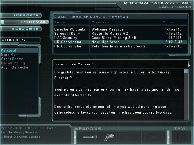 Doom 3 Easter Egg - Special Turkey Puncher Email