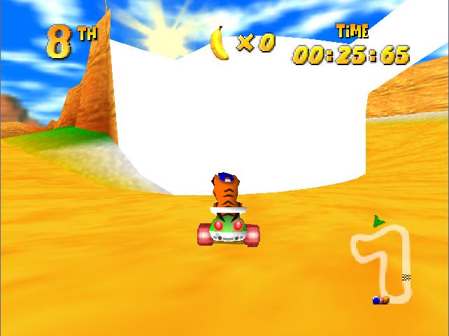 The level is not given a name within the game, but according to the text within the memory, it's called "Horseshoe Gulch." It's very bizarre and unfinished; it doesn't loop, the other racers are clueless, and the graphics aren't all implented. Have fun!