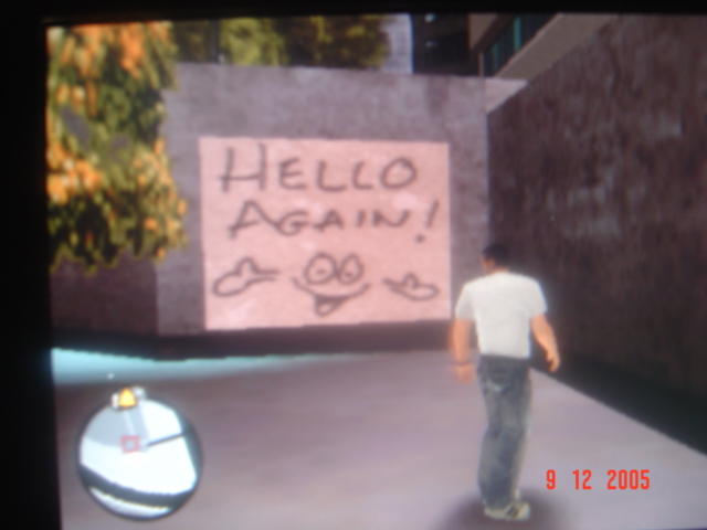 PSP version: If you go to the place where that sign was in GTA 3 you will see that the sign is still there, only this time it says "Hello Again!!" and theres a big smiley underneath!