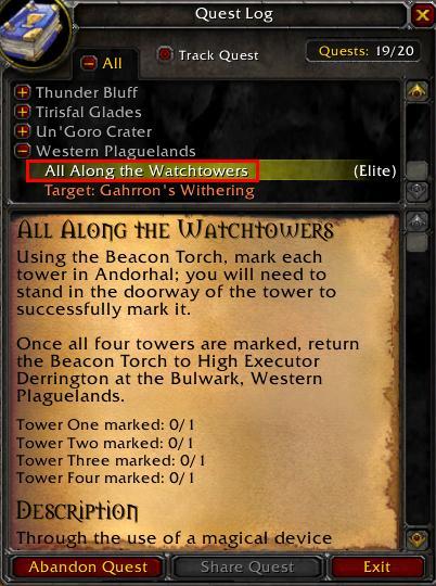 Travel to the western plaguelands, and you will find a quest called "All Along the Watchtower" where you are supposed to light up 4 watch towers with beacons. In Dylan's song, 'All along the watchtower', it says that 'Princes kept the view', and this quest is meant for keeping the view on the scourge.