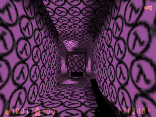 when you go the the shooting range in bluse shift noclip trough the wall where the targets are and there is a pink room full of the half life logo