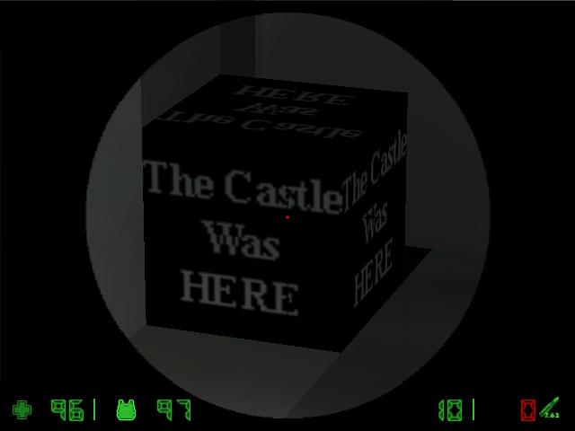 When you reach the final "boss" turn "notarget" and "noclip". get into the room with the bomb. Face the bomb and turn 90deg right. There is a closed window there. Walk through it (noclip) and you will get to the balcony. Now look at the window. Look at the botton left corner of that wall. What a surprise! The castle was here.