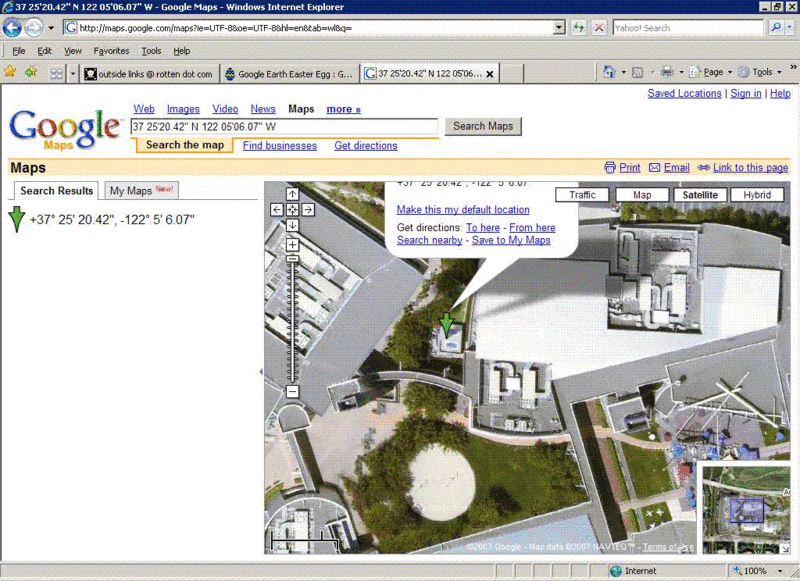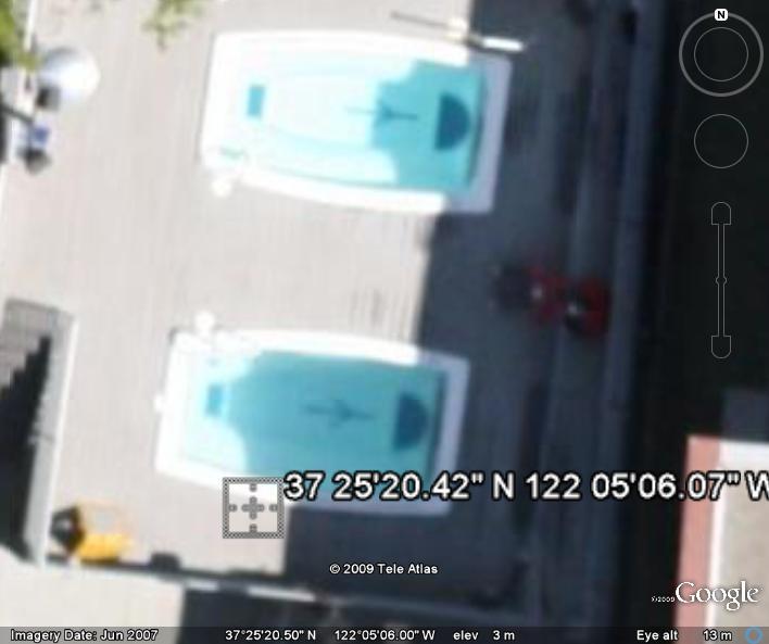 they edit these pictures every time, i mean it is their software that's being used to find the location, they just take the satellite image and switch out the pool, July 20th 2009 i checked it and got what looks to be USB dongles