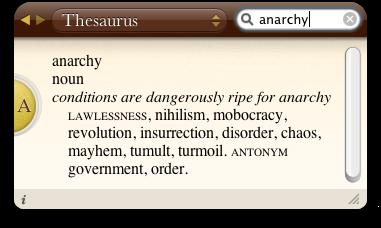 Search for "anarchy" to find the sample sentence: "conditions are dangerously ripe for anarchy" |