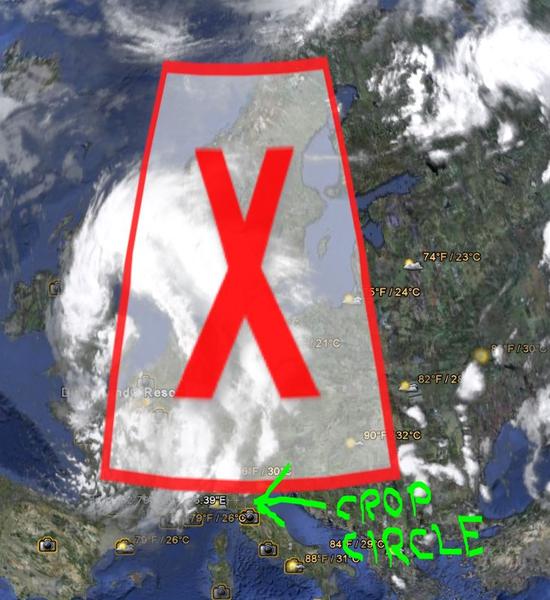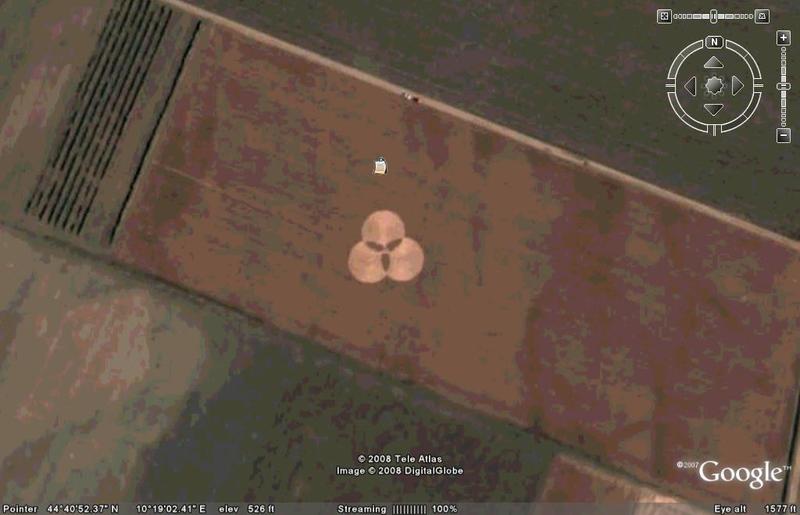 For the second crop circle copy or paste or type 44°40'52.79"N 10°19'6.39"E in the search box and you will find a crop circle.
