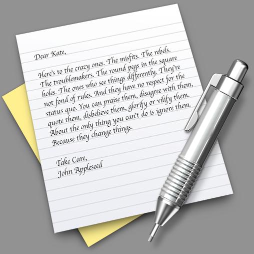 The letter is of the words from an apple ad that premiered in 1997
