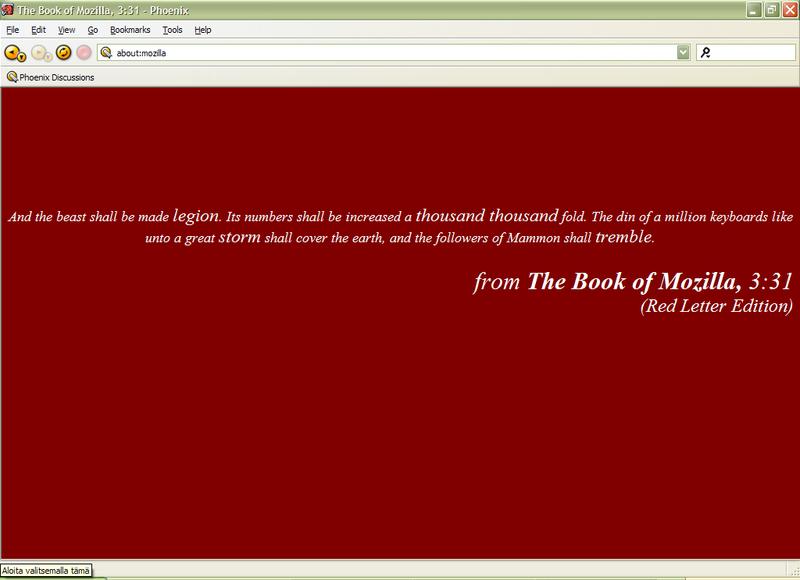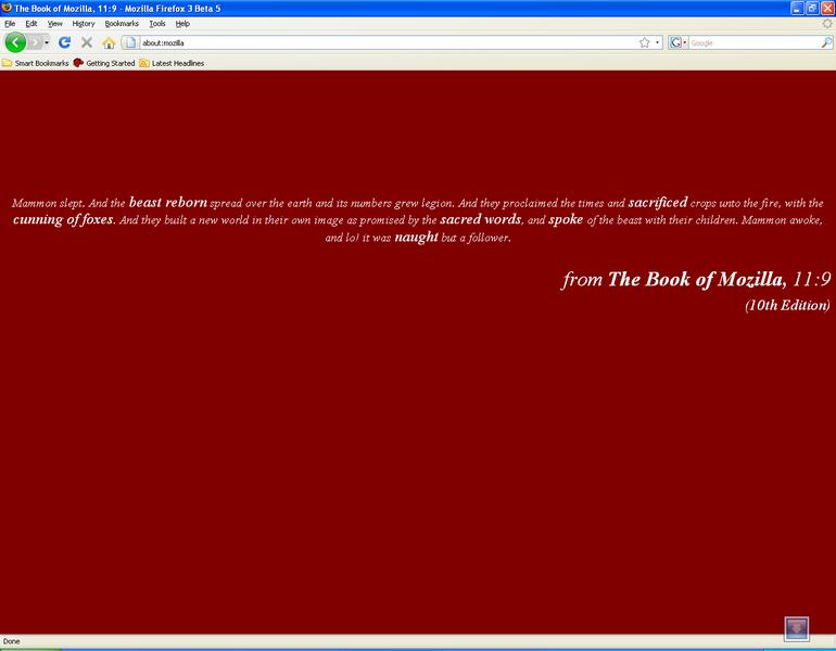 | Firefox 3 Beta 4's version of the long-lived "about:mozilla" egg. |