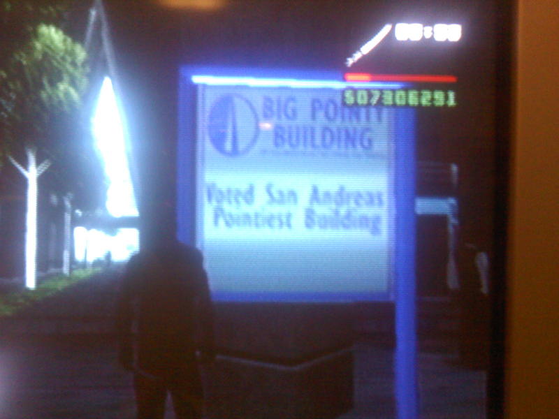 When you get to the building there will be 4 signs but go to the north 2 signs and one will say `voted san andreas pointiest building` and the other will say `big prick jokes are forbidden`.