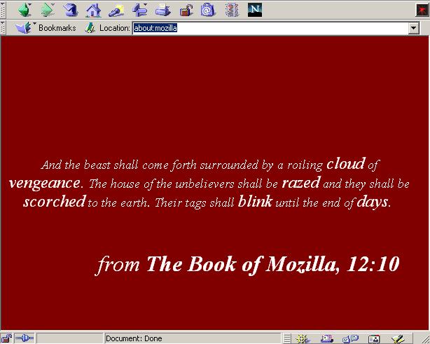 | The Netscape v4.8 "about:mozilla" egg |